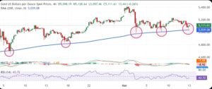 تکنیکی لحاظ سے سونا ابھی بھی چار گھنٹے کے چارٹ پر 200-period Exponential Moving Average (EMA) کے قریب سپورٹ سے اوپر برقرار ہے، جو مارکیٹ میں بنیادی طور پر مثبت رجحان کی نشاندہی کرتا ہے۔
