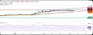 اگر قیمت 0.7147 کے اوپر بریک آؤٹ کرتی ہے تو یہ ممکنہ طور پر مزید مضبوط بُلش موومنٹ کی نشاندہی کرے گا۔