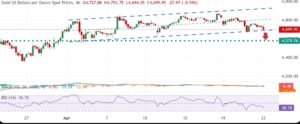چار گھنٹے کے چارٹ کے مطابق، سونا اس وقت ایک ascending channel کے نچلے حصے کے قریب ٹریڈ کر رہا ہے۔