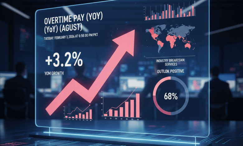 Overtime pay اوور ٹائم تنخواہ (سال بہ سال) اگست ایک اہم معاشی اشاریہ ہے۔ جو یہ ظاہر کرتا ہے کہ ملازمین کو اضافی اوقاتِ کار کے بدلے ملنے والی ادائیگیوں میں پچھلے سال کے اسی مہینے کے مقابلے میں کتنا اضافہ یا کمی ہوئی ہے۔ یہ ڈیٹا لیبر مارکیٹ کی صورتحال، کاروباری سرگرمی، اور مجموعی معاشی رجحانات کو سمجھنے میں مدد دیتا ہے۔